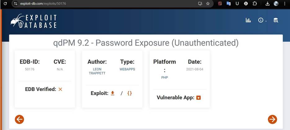 5: Now find out is there any available vulnerability/exploit for this qdPM 9.2 version or not . We found