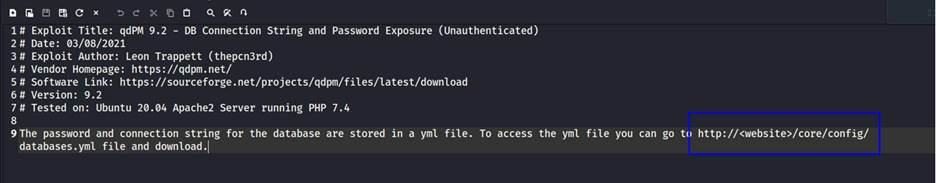 6: Now Download that exploit and open it. Here we found that an .ylm file store password and connection string and share the