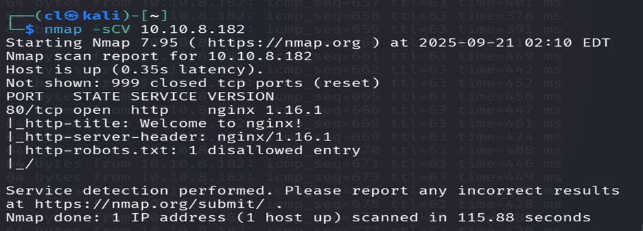 Nmap -sCV 10.10.8.182