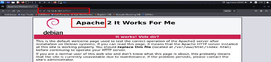 Hit on the web browser with the highest port , and got the service is Apache