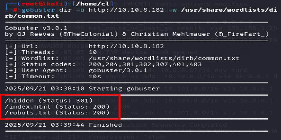Using gobuster to find out the directory List