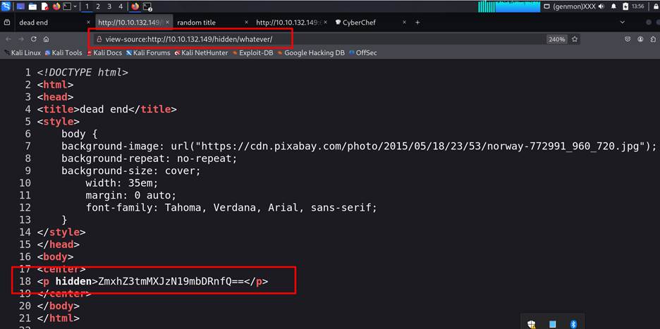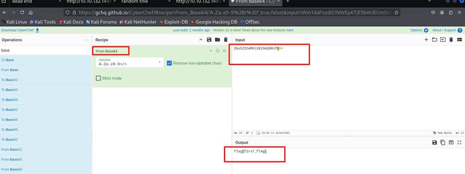 View the page source of recently found page and using cyberchef to find out the flag 1