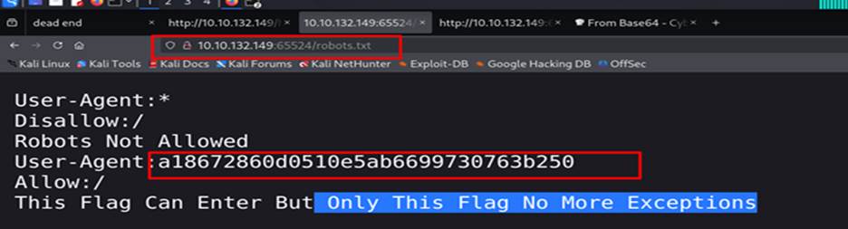 Visit http://10.10.132.149:65524/robots.txt and found a hash value