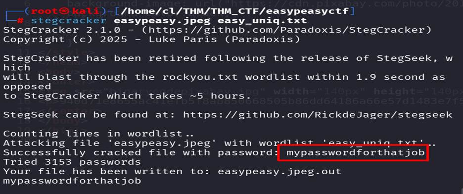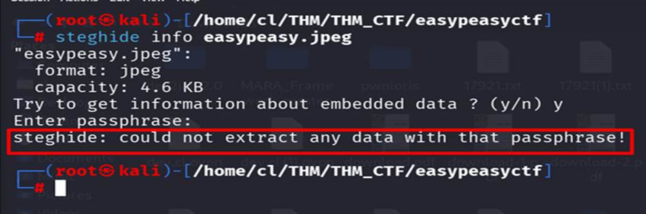 and get the extract information in to file called easypeasy.jpeg.out